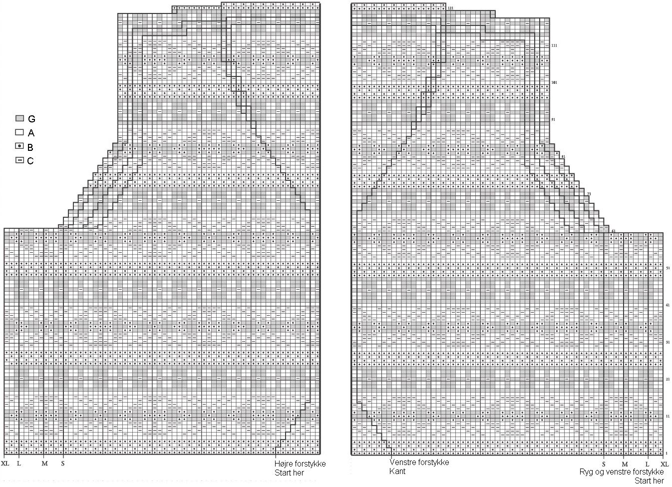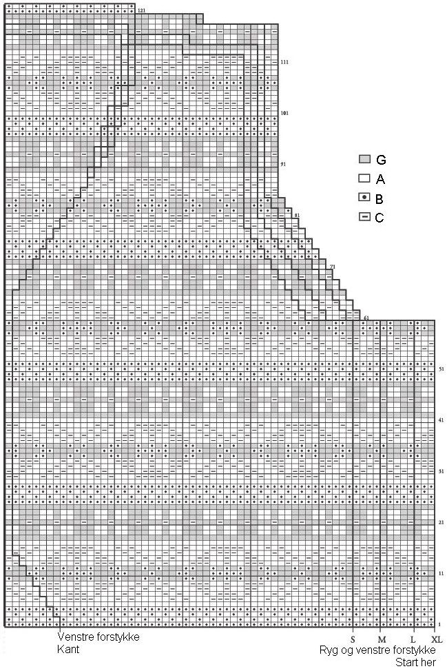 - Forts uden indtagninger, til du har strikket p 112 (114, 118, 118) af diagrammet.
