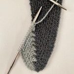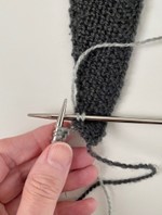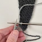 - P 2 (vrangs): 5 r, 1 løst af med garnet foran.