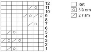 - Omg 11: (1 r, slå om, 2 r sm, 5 r) x 7