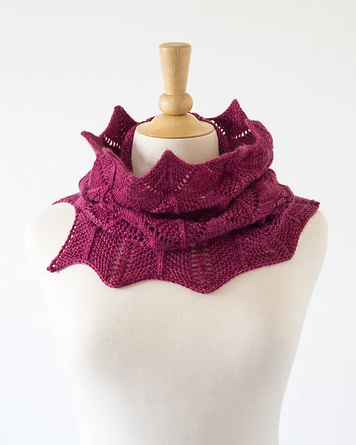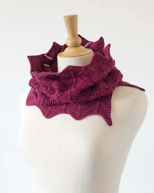 | Flot og lidt speciel halsvarmer med hulmønster og spidser. Den er varm og går ud på skuldrene med en slids i den ene side. Her i 100 % merinould på pinde 4 mm. |