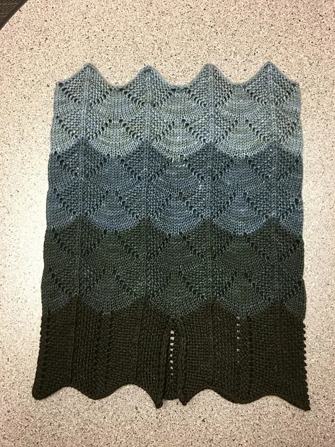 - Blokning: Gør halsvarmeren fugtig og glat hulmønstret. Stræk det og sæt nåle i spidserne foroven og forneden. Lad den tørre helt, før nålene tages ud.