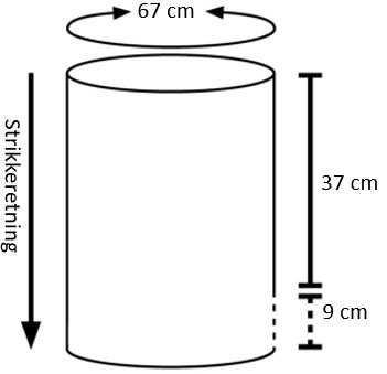 - Omg 15: *1 r, slå om, 7 r, DI, 7 r, slå om, 1 r*. Gent fra * til * omg ud.