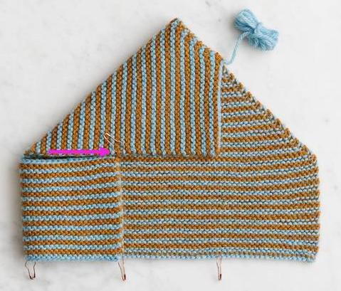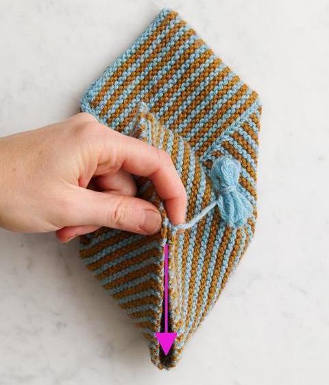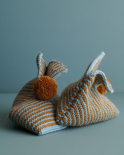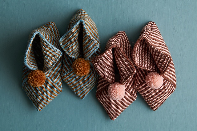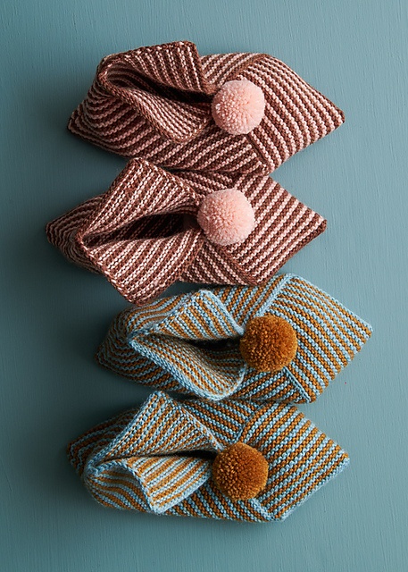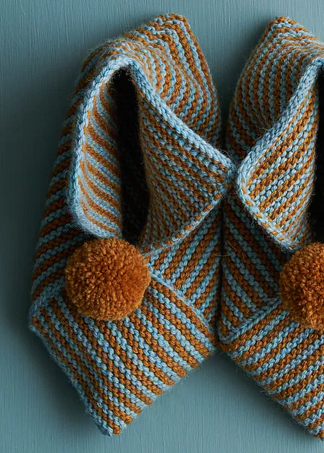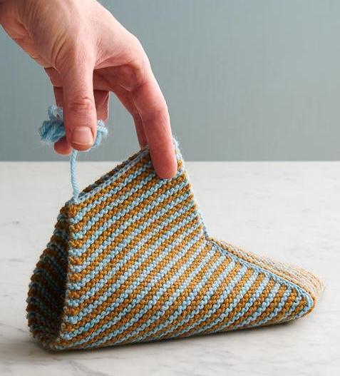 Disse foldede, stribede, retstrikkede slippers er sjove at strikke.