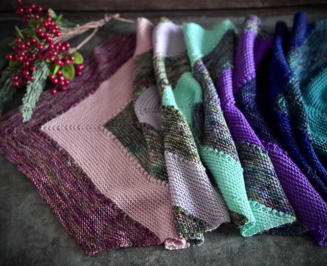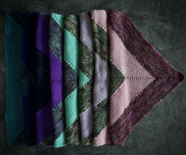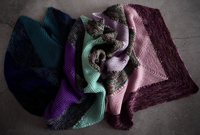 Denne version er strikket af 12 mininøgler på hver 20 g (A-L), skiftevis ensfarvede og melerede. Hver sektion bruger næsten et helt mininøgle.
