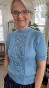 © 2025 Hunglish Knitter. Original titel Bonus Lace Tee. Kun til personlig brug. Hverken opskrift eller færdigstrikket produkt må videresælges. Kontakt Hunglish Knitter.
