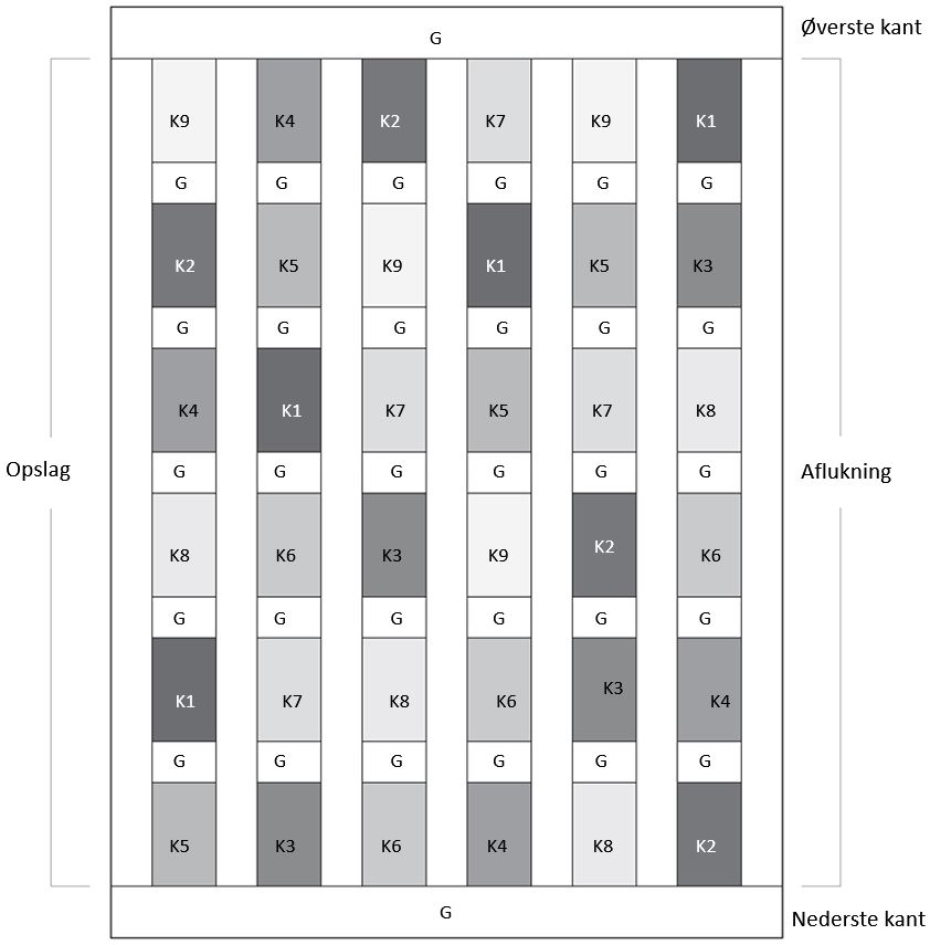 - Strik som Vandret stribe 1. Brug K4, K6, K9, K5, K1 og K7 til denne stribe.