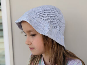 Dejlig sommerhat til børn 3-4 år. Den er ikke svær at strikke.