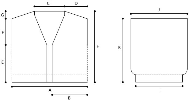 K (Sleeve Length): (43, 42, 40½, 40½) (40½, 39½, 38, 35½) (35½, 34½, 34½, 34½) cm
