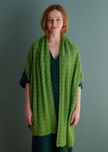 © 2025 Purl Soho. Original titel Laurel Wrap. Kun til personlig brug. Hverken opskrift eller færdigstrikket produkt må videresælges. Kontakt Purl Soho via Ravelry eller på www.purlsoho.com.