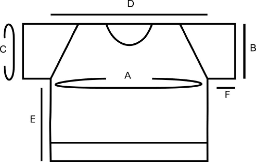 | C: Omkreds af overarm | 35 cm | 38 cm | 38 cm | 41½ cm | 43 cm | 45 cm | 48 cm |