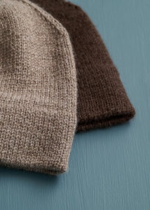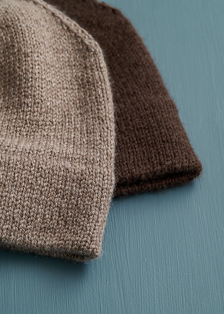 | Nem og anvendelig hue med dobbelt kant i 5 størrelser. Den kan trækkes ned over ørerne og ned i nakken. Her strikket i 100 % yak (kan strikkes i andet garn) på pinde 3½ og 3¾ mm. |