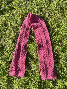 Tørklædet strikkes fra den ene ende til den anden i et chevron-mønster.