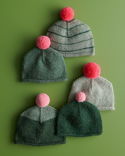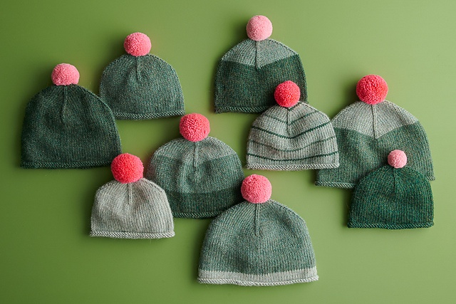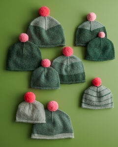 © 2024 Purl Soho. Original titel Nine-Note Hats. Kun til personlig brug. Hverken opskrift eller færdigstrikket produkt må videresælges. Kontakt Purl Soho via Ravelry eller på www.purlsoho.com.