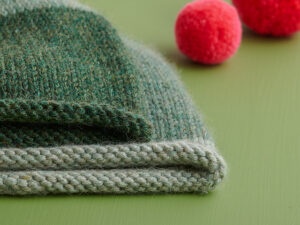 - Hæft alle løse ender og blok huen forsigtigt i våd tilstand, før du sætter pomponen på.