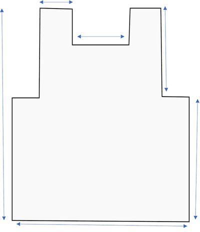 - Tæl retrillerne på øverste del af forstykket fra ærmegab til den markerede skuldertop.