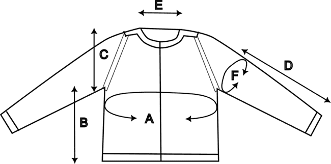 F: Omkreds af overarm: 38½ (40½, 42½, 44½, 48½, 52, 58, 62, 64) cm