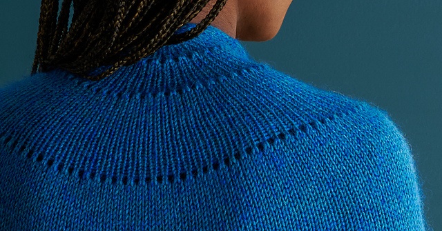 A: Purl Soho Season Alpaca (100 % super baby alpaca; 199 m/100 g); garnforbrug ca. 265 (910) m); farve: True Turquoise; 2 (5) ngl.