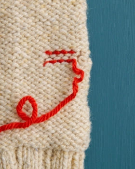 - Bryd garnet og tråd stoppenålen med enden. Træk den gennem de sidste m 2 gange. Stram den og hæft den på indersiden.