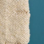 - Omg 12: 1 vr, fjern markør, 1 vr, (2 r, 1 vr) x 2, strik vr omg ud.