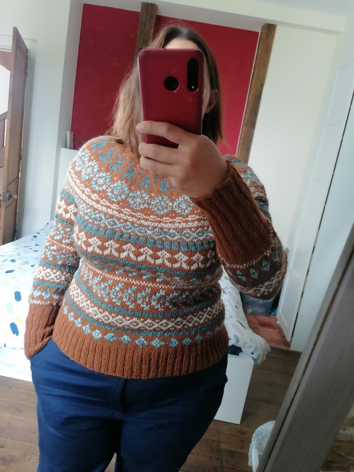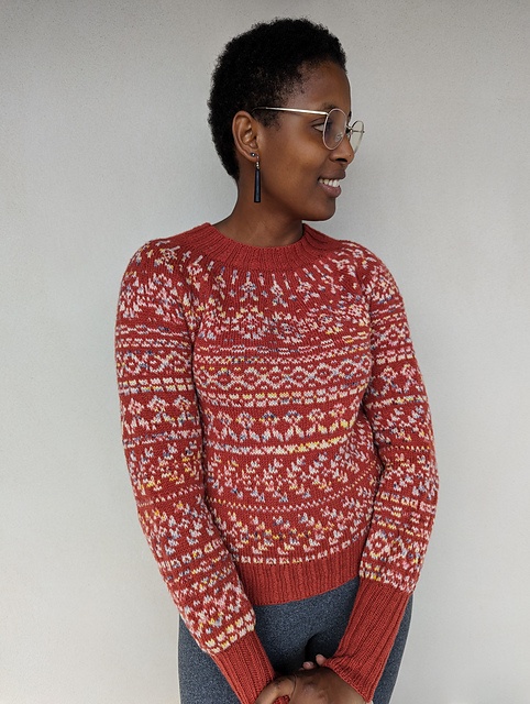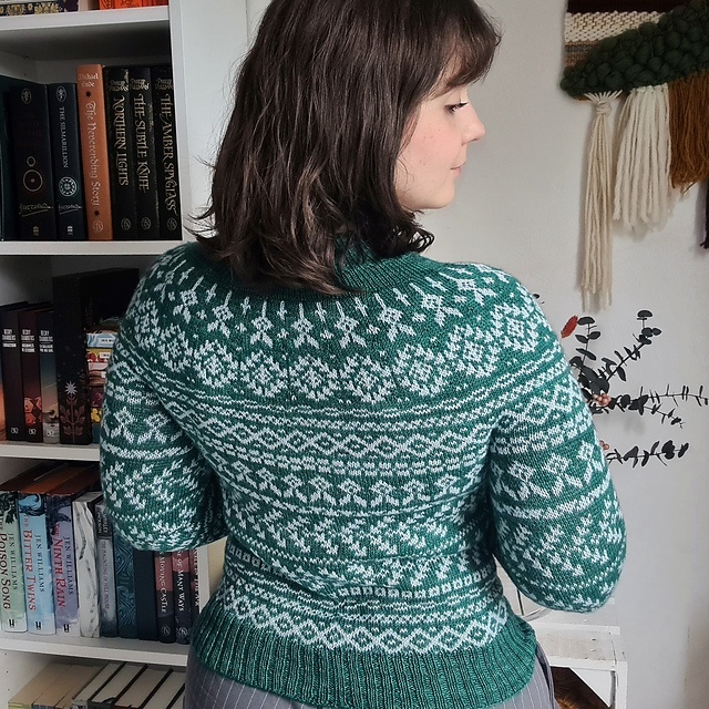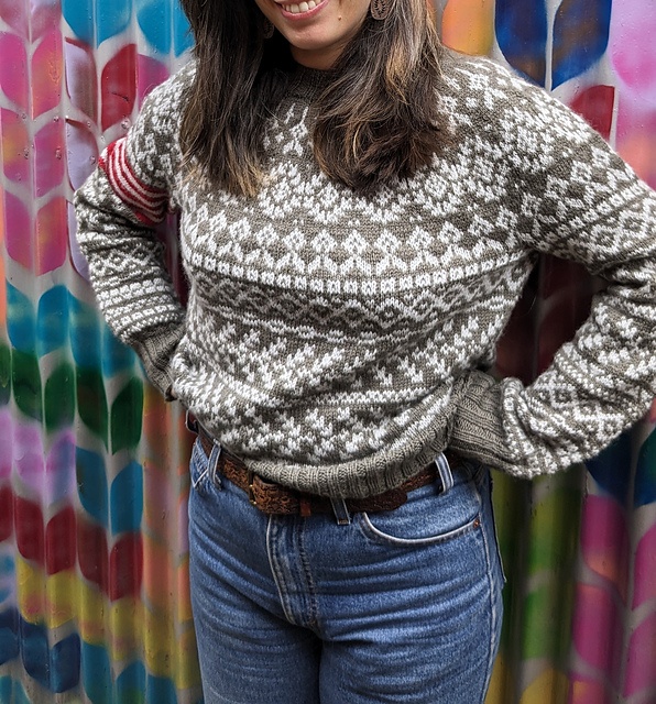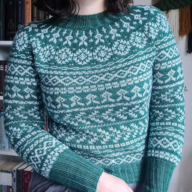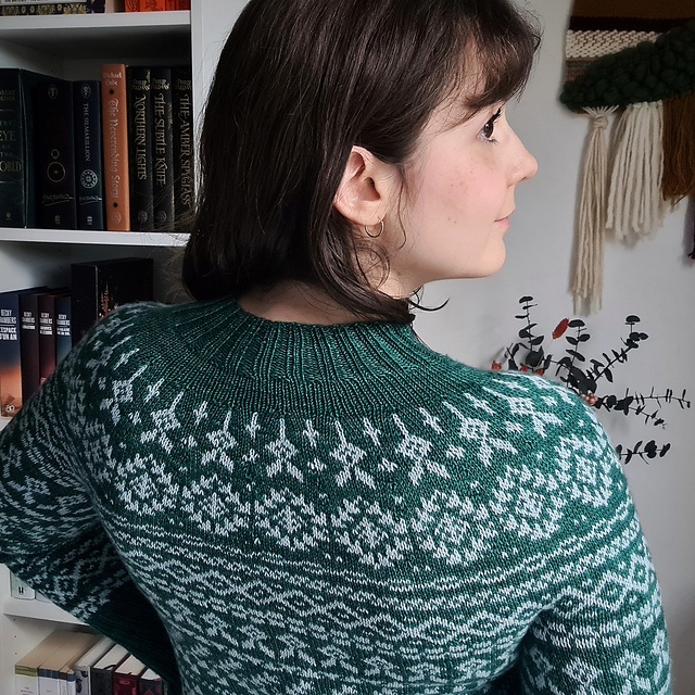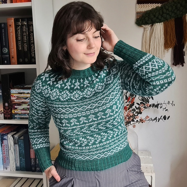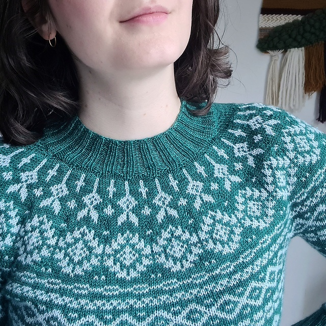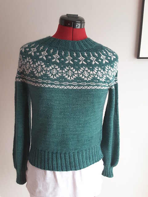 - Hæft alle løse ender og blok sweateren.
