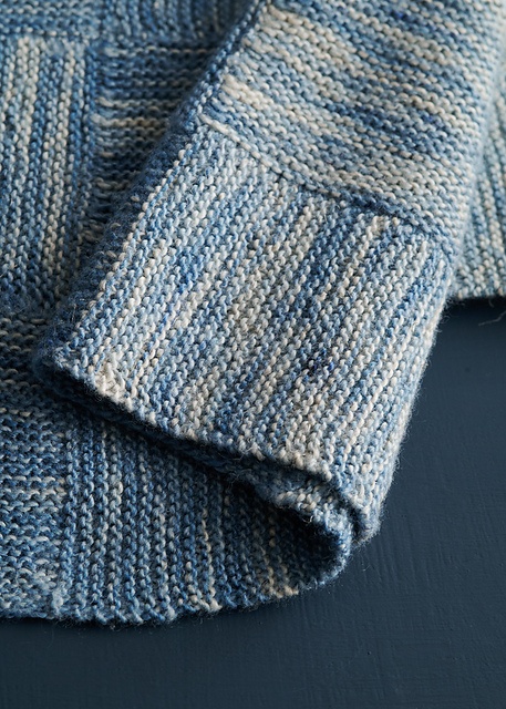 Purl Soho Estuary (65 % fin merino, 20 % morbærsilke, 15 % hør; 351 m/100 g); garnforbrug ca. 1984 m i alt; farve: Blue Tourmaline; 6 ngl.