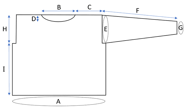 G: Omkreds manchet (strakt): 24 (24, 24, 24, 24, 26½, 26½, 26½, 26½) cm