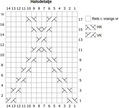 - Strik 18 p glatstrikning. Strik halsdetalje over de 14 m ml markørerne.