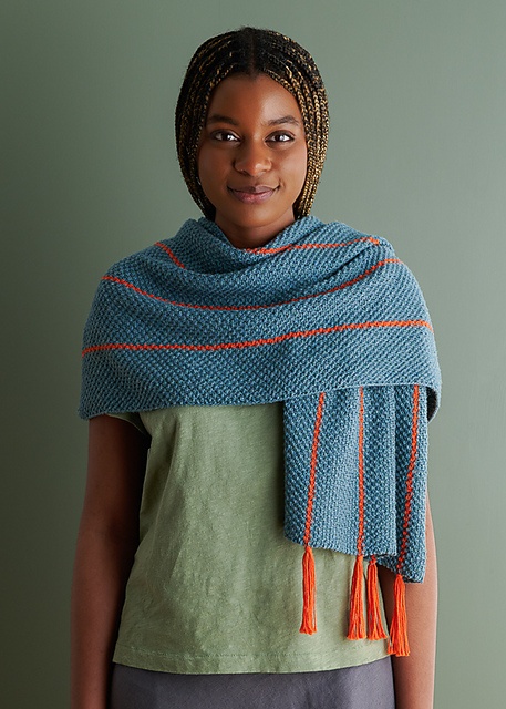 © 2025 Purl Soho. Original titel Sowing Seeds Wrap. Kun til personlig brug. Hverken opskrift eller færdigstrikket produkt må videresælges. Kontakt Purl Soho via Ravelry eller på www.purlsoho.com.