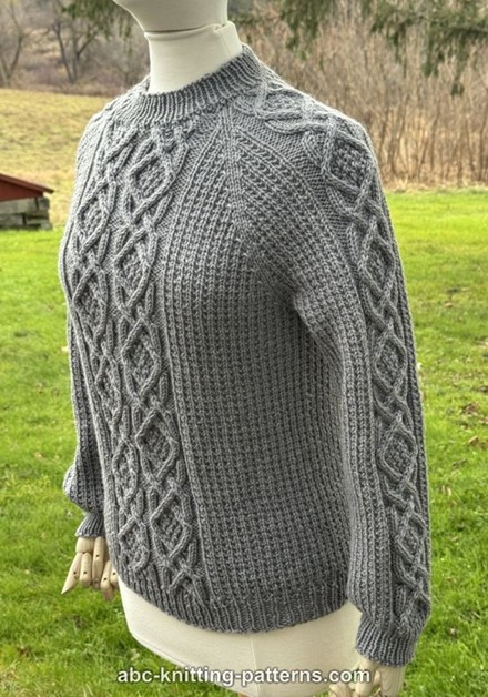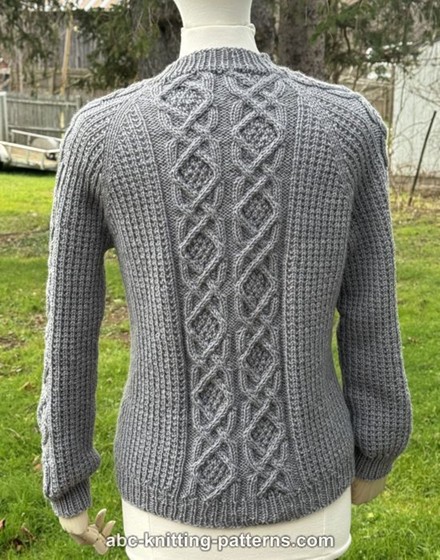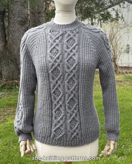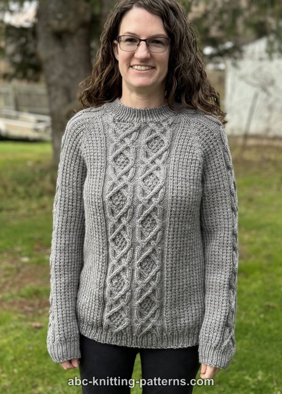 Denne klassiske snoningssweater er helt sømløs. Du starter ovenfra og strikker nogle pinde frem og tilbage til den runde halsudskæring. Derefter strikker du rundt ned til den nederste kant, Raglanudtagninger indrammer det midterste snoningspanel, og der er mindre snoninger langs begge ærmer. Når kroppen er færdig, samles der masker op til ærmer, som strikkes rundt.