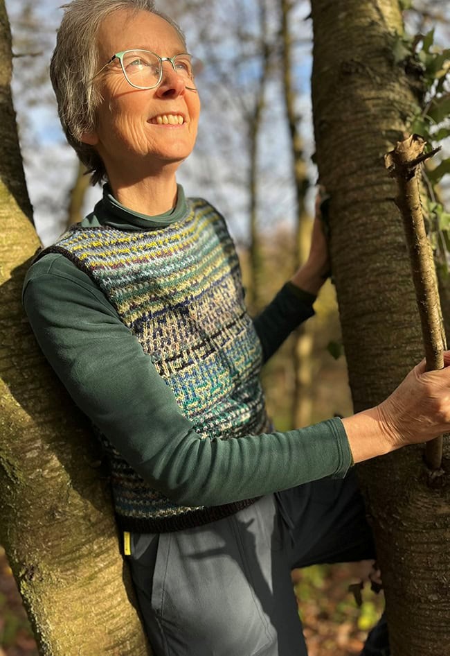 © 2025 Kate Harvie. Original titel Kaleidoscope. Udgivet i Knitty Deep Fall 2025. Fotos: Jess Harvie, Elisabeth Zippelius. Kun til personlig brug. Hverken opskrift eller færdigstrikket produkt må videresælges. Kontakt Kate Harvie eller på Instagram.