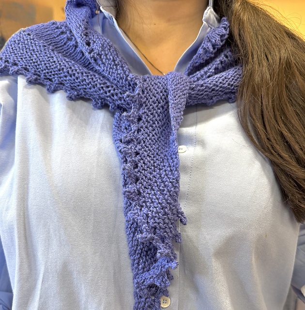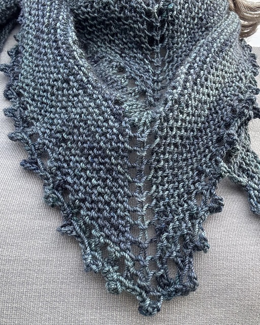 Tørklæder kan bruges på mange måder og i al slags vejr, også som et trekantet sjal. Det strikkes frem og tilbage i fingering/lace-garn. Det kan nemt tilpasses andre mønstre.