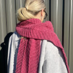 Tørklæde i chevronmønster på tykke pinde. Meget nemt at strikke, Kan bruges på begge sider. Her i 100 % uld på pinde 6 mm.