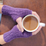 Fingerløse vanter med hul til tommelfingeren. De er lette at strikke. Også begyndere kan være med. Her i merino, cashmere og silke på pinde 4 mm.